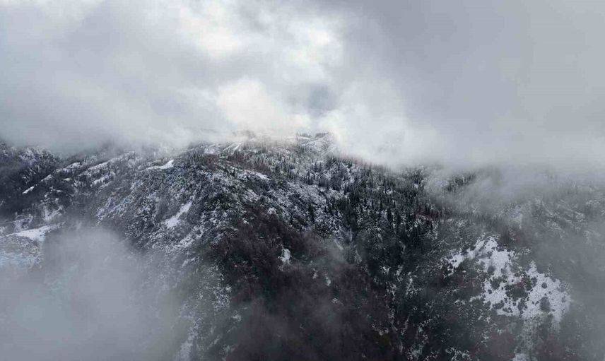 RİZE’NİN ŞEHİR MERKEZİNE EN YAKIN YAYLASI OLAN HANDÜZÜ YAYLASI’NDA KARIN GÜZELLİĞİ HAVADAN GÖRÜNTÜLENDİ