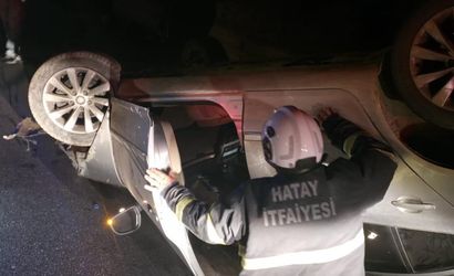 Hatay'ın Hassa ilçesinde bir otomobil, takla atarak ters döndü. Kazanın meydana geldiği yer, Hatay - Gaziantep yolu üzerindeki Girne Mahallesi mevkiisiydi.