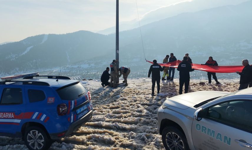 Hassa ilçesine bağlı Arpalıuşağı Mahallesi’nde bulunan zirve noktada yer alan Türk bayrağı, rüzgar ve yağış sebebiyle yıpranmıştı. Bu durumu fark eden jandarma ekipleri, Hatay Büyükşehir Belediyesi itfaiyesinin desteğini alarak bayrağın değişim işlemini gerçekleştirdi.