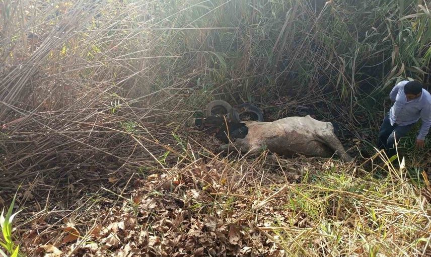 Hatay’ın Kırıkhan ilçesinde, Torun Mahallesi’nde otlayan bir inek, otladığı sırada dereye düştü.