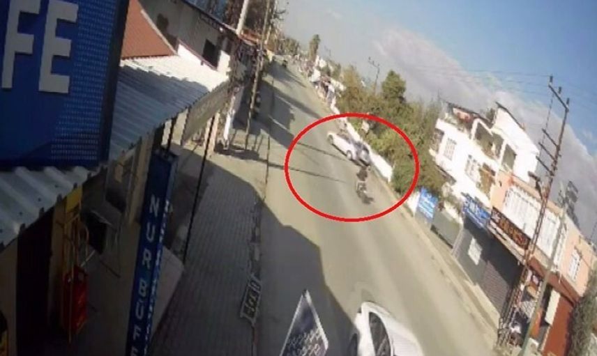 Hatay'ın Dörtyol ilçesinde, dönüş yapmak isteyen bir otomobille çarpışan motosikletin kaza anı güvenlik kameraları tarafından kaydedildi.