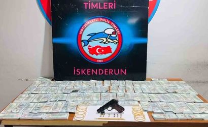 Hatay'da, İskenderun'da gerçekleştirilen bir operasyonda, çeşitli sahte ziynet eşyalarıyla birlikte 1 milyon Amerikan doları sahte para ele geçirildi.