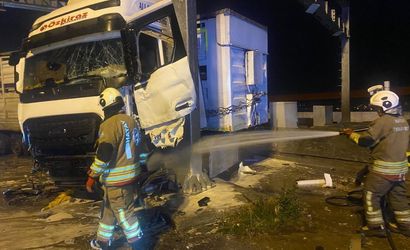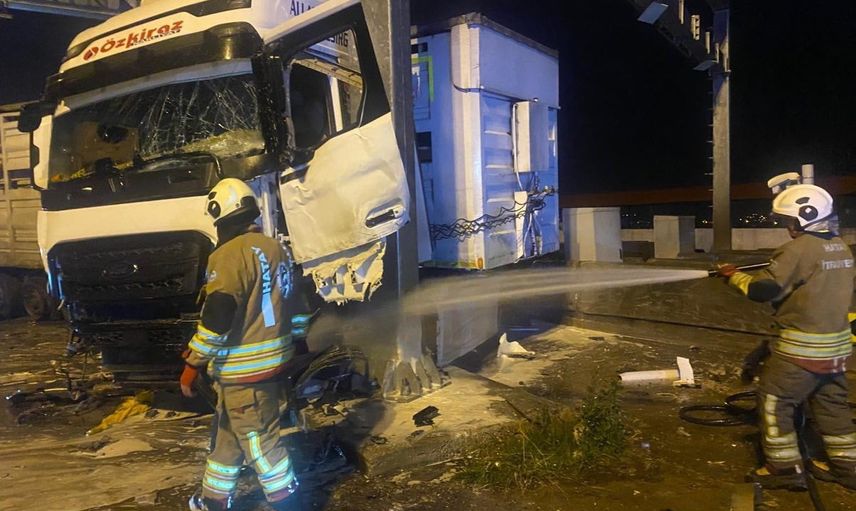 HATAY’DA OTOBAN GİŞELERİNE ÇARPAN TIRIN SÜRÜCÜSÜ YARALANDI.
