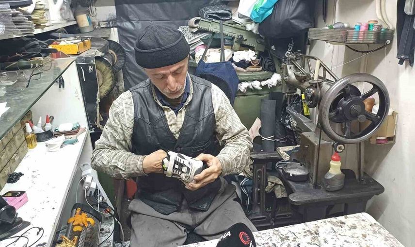 Kayseri’de 60 yaşındaki ayakkabı tamircisi Mehmet Uzboyalı, hayırseverlerin getirdiği ayakkabıları tamir ederek ihtiyaç sahiplerine ulaştırıyor.