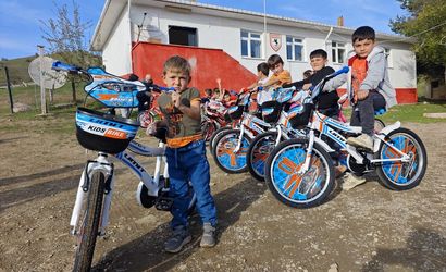 Bisikletlerini alan öğrencilerin mutlulukları gözlerinden okunuyordu. Bu örnek olay, sosyal medyanın olumlu etkilerinin güzel bir yansıması olarak öne çıktı.