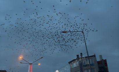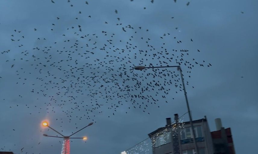 Tekirdağ'ın Hayrabolu ilçesinde, sabah saatlerinde etkileyici bir doğa olayı yaşandı. İlçe merkezinde beliren kalabalık bir karga sürüsü, gökyüzünü adeta istila etti.