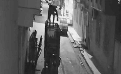 İŞYERİ ÖNÜNDEKİ KOŞU BANDININ ÇALINMA ANI KAMERADA