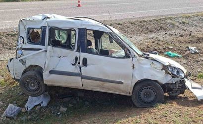 Kütahya'nın Hisarcık ilçesinde meydana gelen trafik kazasında, sürücüsünün direksiyon kontrolünü kaybetmesi sonucu bir otomobil takla attı.