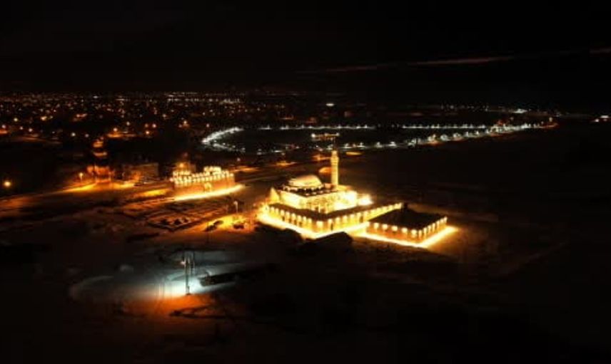 VAN’IN İPEKYOLU İLÇESİNDE BULUNAN VE OSMANLI MİMARİSİNİN EN ZARİF ÖRNEKLERİNDEN BİRİ OLAN TARİHİ HÜSREV PAŞA CAMİİ, UYGULANAN YENİ IŞIKLANDIRMA PROJESİYLE GECEYE DAMGA VURUYOR. HEMEN YANI BAŞINDA YÜKSELEN GÖRKEMLİ VAN KALESİ İLE BÜTÜNLEŞEN CAMİ, ZİYARETÇİLERİNE UNUTULMAZ BİR GÖRSEL ŞÖLEN SUNUYOR.