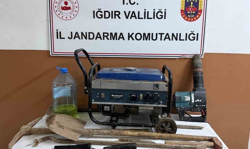 Iğdır İl Jandarma Komutanlığı'na bağlı Kaçakçılık ve Organize Suçlarla Mücadele Şube Müdürlüğü, Tuzluca ilçesindeki bir alanda izinsiz kazı yapıldığı ihbarıyla harekete geçti. Belirlenen adrese düzenlenen operasyonda, kazı yapan 4 şüpheli suçüstü yakalandı.