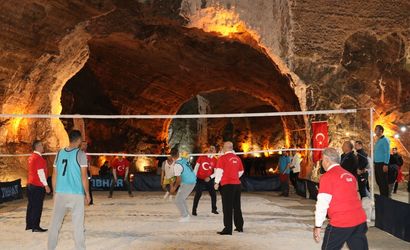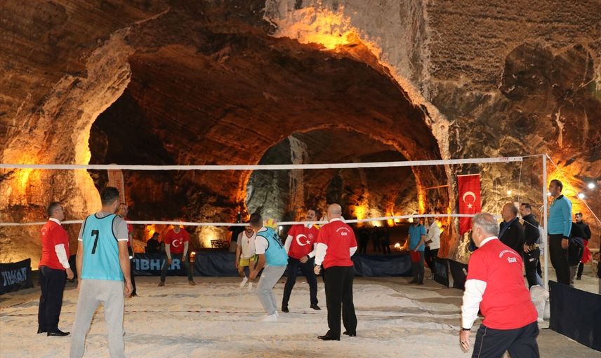 Iğdır'da, yer altındaki Tuz Mağaralarında "29 Ekim Cumhuriyet Bayramı Voleybol Turnuvası" yapıldı.