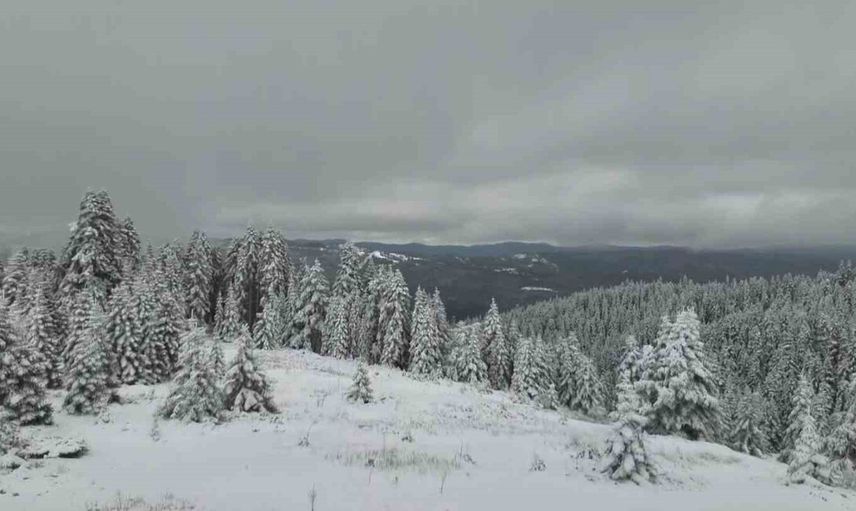 Beyaz örtüyle kaplı Ilgaz Dağı, havadan görüntülendiği anlarla görenleri mest etmeye devam ediyor.