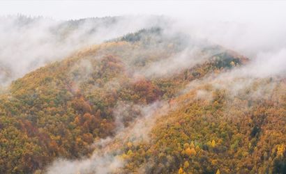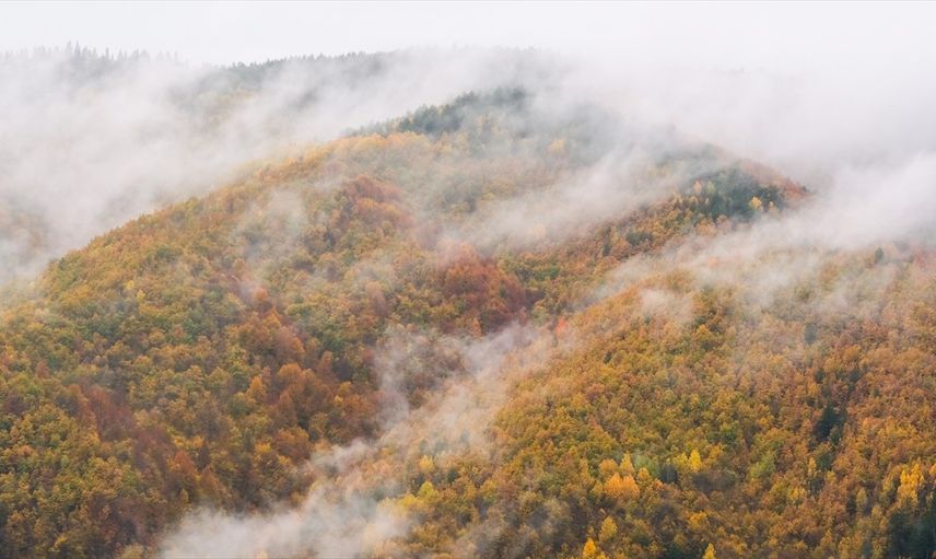 Türkiye'nin önemli kayak ve kış turizmi merkezlerinden Ilgaz Dağı'nın yüksek kesimlerinde etkili olan sis, sonbahar renkleriyle beraber güzel görüntü oluşturdu.