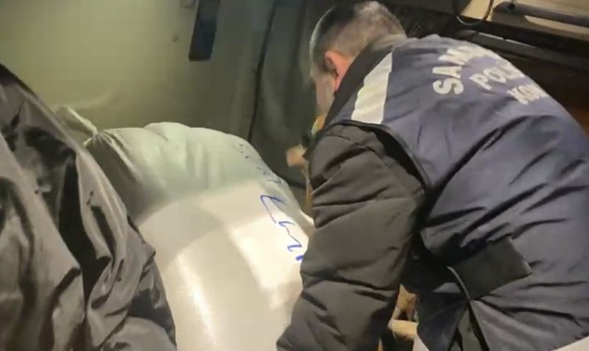 Samsun'un İlkadım ilçesinde gerçekleşen bir operasyon sonucunda, polis ekiplerince durdurulan bir tırda kaçak tütün ele geçirildi.