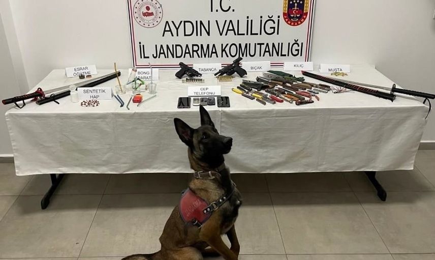 Yazıdere Mahallesi'nde iki kişinin ikametinde yapılan adli arama sonucu, B. A. (42) ve N. Y. (32) isimli şahısların adreslerinde Jandarma Komando Timi, narkotik ve bomba arama köpeklerinin katılımıyla detaylı bir araştırma gerçekleştirildi. Yapılan aramalarda 51 adet sentetik hap, 2 adet bong aparatı, 2 adet tabanca, 59 fişek, 3 şarjör, 25 adet sustalı bıçak, 2 adet samuray kılıcı, 1 muşta ve 5 cep telefonu ele geçirildi.