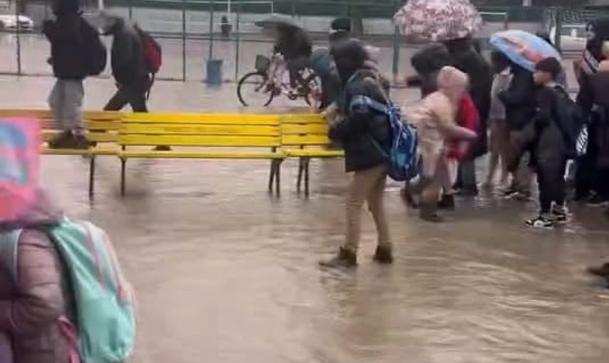 BURSA'NIN İNEGÖL İLÇESİNDE DE FIRTINA VE SAĞANAK YAĞIŞ ETKİLİ OLDU. SU BASAN BİR OKULDA ÖĞRENCİLER VE VELİLER İÇİN BANKLARDAN KÖPRÜ YAPILDI. VELİLER, "SANKİ BİZE SIRAT KÖPRÜSÜ YAPMIŞLAR" DİYEREK TEPKİ GÖSTERDİ.