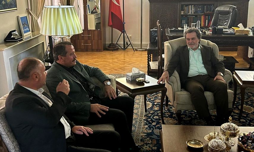 Memur-Sen Genel Başkanı Ali Yalçın (sol 2), İran temasları kapsamında, Tahran Büyükelçisi Hicabi Kırlangıç (sağda) ile de bir araya geldi.