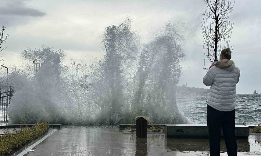 İstanbul, lodosun etkisiyle dev dalgalarla karşılaştı. Sahil boyunca oluşan bu dalgalar, kıyıdan yükselerek etkileyici bir manzara sundu. Fırtınaya rağmen dalgaların görsel şölenini izlemek için sahilde duran bazı vatandaşlar, bu anları cep telefonlarıyla kaydetti.