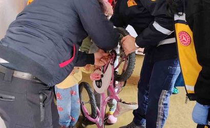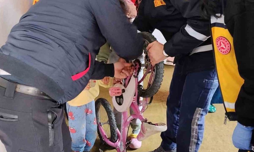 Çorum’un Alaca ilçesinde, bisiklet zincirine parmağı sıkışan 5 yaşındaki M.D., itfaiye ekipleri tarafından kurtarıldı.