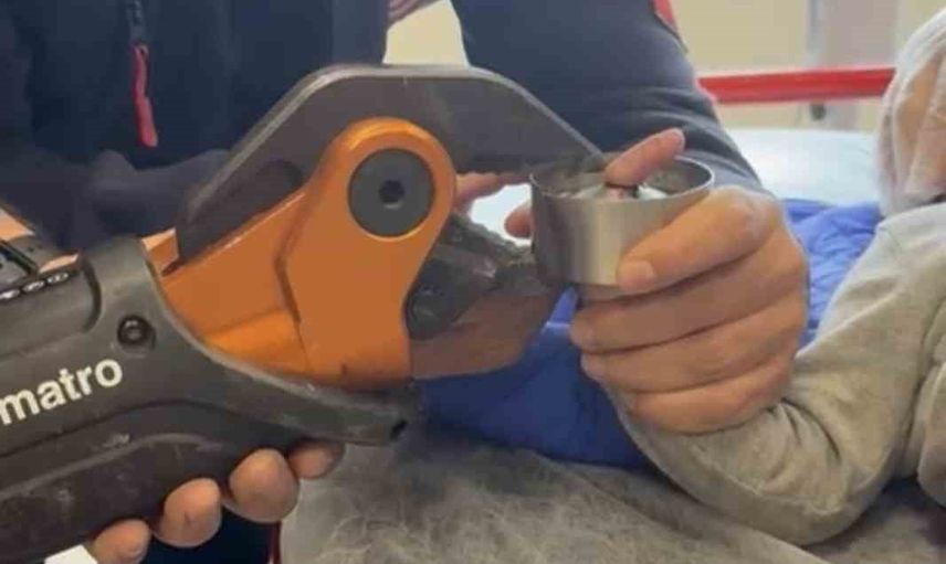ELAZIĞ’DA PARMAĞI KÜLLÜĞÜN DELİĞİNE SIKIŞAN ÇOCUĞUN İMDADINA İTFAİYE EKİPLERİ YETİŞTİ. HASTANEDE AYIRICI İLE KÜLLÜK KESİLEREK ÇOCUĞUN PARMAĞI ÇIKARILDI
