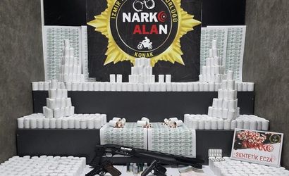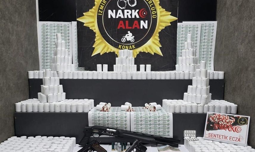 İZMİR’İN KONAK İLÇESİNDE NARKO ALAN EKİPLERİ TARAFINDAN DÜZENLENEN OPERASYONDA 108 BİN 492 ADET SENTETİK ECZA ELE GEÇİRİLDİ. OPERASYONDA GÖZALTINA ALINAN 3 ŞÜPHELİDEN BİRİNİN KESİNLEŞMİŞ HAPİS CEZASIYLA ARANDIĞI TESPİT EDİLDİ.
