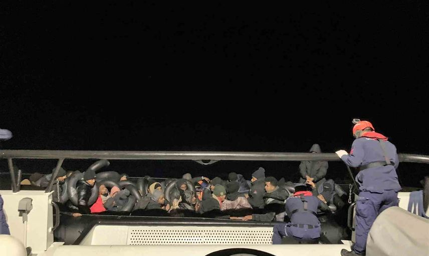 Günün ilk operasyonu, sabah saat 07.15 sularında gerçekleşti. Sahil Güvenlik ekipleri, lastik bot içerisindeki düzensiz göçmenler hakkında alınan ihbar üzerine TCSG-902 ve KB-86 botlarıyla hemen bölgeye intikal etti. Hareket halindeki lastik bot durdurularak, içerisindeki 44 düzensiz göçmen karaya çıkarıldı.