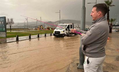 Yağışın ardından meydana gelen su baskınları nedeniyle sürücüler yollarında ilerlemekte zorluk yaşarken, bazı vatandaşlar ise duruma dikkat çekmek amacıyla ilginç tepkiler verdiler. Bu bağlamda, Hakan Acat isimli bir vatandaş, göle dönen caddede eline aldığı oltayla su birikintisine balık tutmaya çalışarak dikkat çekti. Acat, Kordon Boyu'ndaki bu sorunun sürekli yaşandığını söyledi.