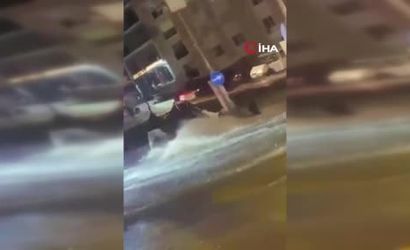 Cadde üzerinde akıntıya kapılan bir yayayı, çevrede bulunan bir vatandaş ve polis ekipleri başarılı bir şekilde kurtardı. Yaşanan bu can pazarı, bir okur tarafından cep telefonuyla kaydedildi ve sosyal medyada geniş yankı buldu.