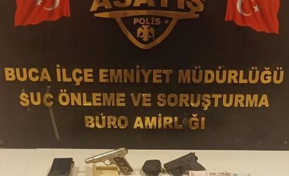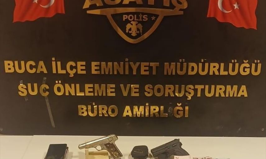 İzmir'in Buca ilçesindeki 2 operasyonda ruhsatsız silah ve uyuşturucu ele geçirildi, 6 şüpheli gözaltına alındı. Operasyonda, ruhsatsız 2 tabanca ve bu silahlara ait 35 fişek, 49 sentetik ecza hap, 91 gram sentetik uyuşturucu ve suçtan elde edildiği değerlendirilen 178 bin 900 lira ele geçirildi.