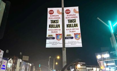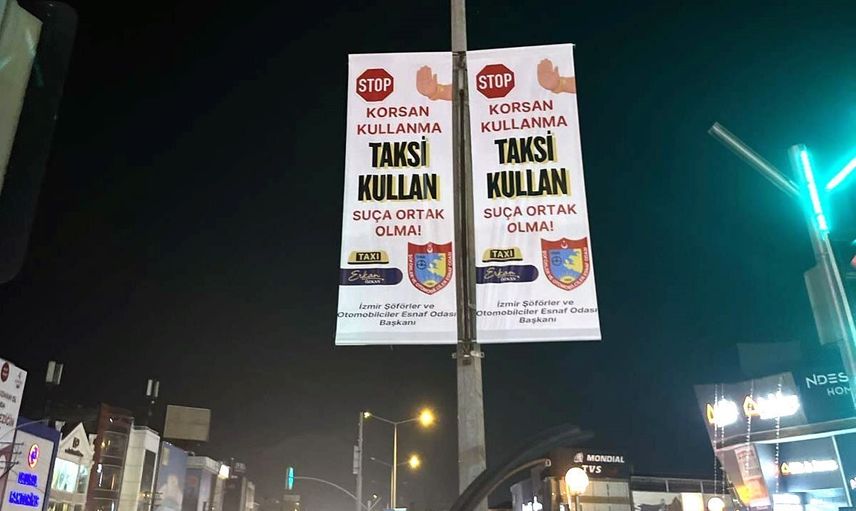İzmir Şoförler ve Otomobilciler Esnaf Odası Başkanı Erkan Özkan, İzmir genelinde asılan afişlerle korsan taksiciliğe dikkat çekiyor. Afişlerde, "Korsan kullanma, taksi kullan, suça ortak olma" mesajı veriliyor.