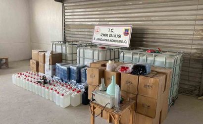 Olay, Jandarma Genel Komutanlığı'na bağlı ekipler tarafından tespit edilen sahte alkol üretimi ve satışı yapılan adreslere yönelik düzenlendi. Konak ilçesinin Güzelyurt ve Kurtuluş mahalleleri ile Bornova ilçesinin Mevlana, Ümit ve Egemenlik mahallelerinde yapılan denetimlerde, 3 bin 360 litre kaçak etil alkol, 50 adet alkollü içki için kullanılan aroma kiti, 1 adet kapak vakumlama makinesi ve 6 adet cep telefonu bulundu.