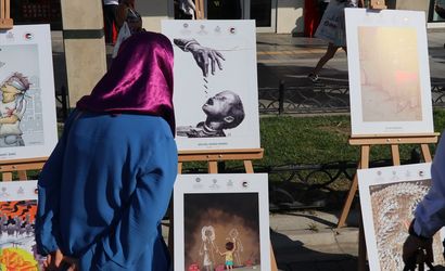 Mithatpaşa Caddesi'nde, sivil toplum kuruluşlarının öncülüğünde gerçekleşen bu anlamlı etkinlikte, "Gazze'nin Umudu Küresel Sumud Filosu'na Selam Ol" yazılı pankartlar asıldı. Cadde boyunca filo hakkında bilgilendirici panolar ve çarpıcı karikatürlerin yer aldığı bir sergi düzenlendi.
