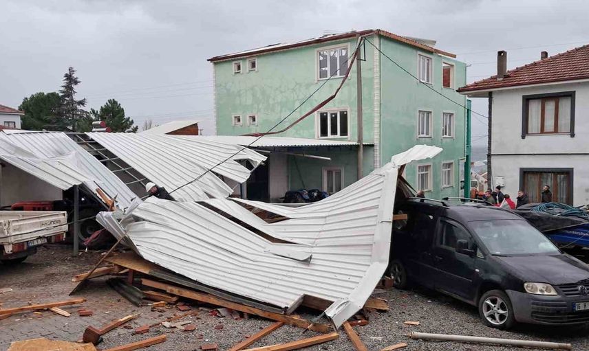 Edinilen bilgilere göre, fırtına sırasında çatının kopması sonucu bahçeye düştü. Uçan çatı, çevresindeki elektrik tellerine ve bir araca zarar verdi.