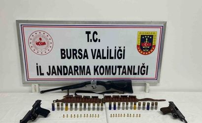 Yapılan aramada 2 adet kurusıkı tabanca, 1 adet ruhsatsız av tüfeği ve 23 adet 7.65 mm tabanca mermisi ile 24 adet av tüfeği mermisi ele geçirildi.
