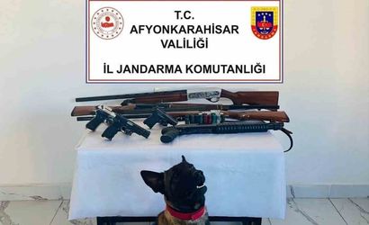 AFYONKARAHİSAR'DA JANDARMA TARAFINDAN BİR ADRESE YAPILAN BASKINDA 7 RUHSATSIZ SİLAH ELE GEÇİRİLDİ.