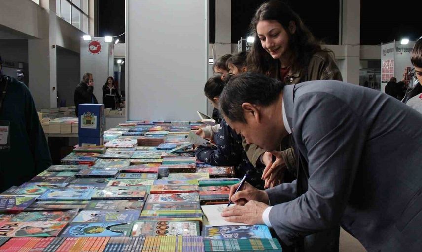 MANİSA 8. KİTAP FUARI'NDA SÖYLEŞİ PROGRAMINA KATILAN JAPON DEPREM UZMANI MORİWAKİ, ÖĞRENCİLERLE BİR ARAYA GELEREK DEPREM BİLİNCİ KONUSUNDA ÖNEMLİ BİLGİLER PAYLAŞTI