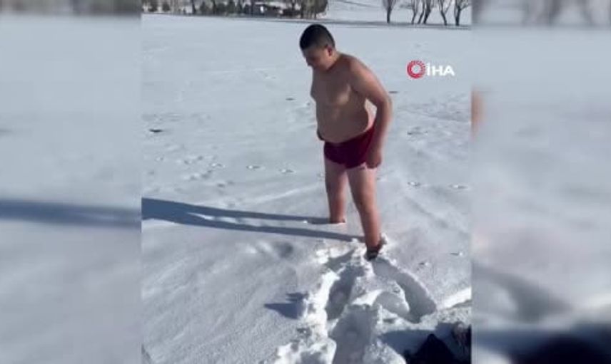 14 yaşındaki judo sporcusu Abdullah Duhan Kartal, Sivas’ta soğuk havalarda kar banyosu yaparak dikkatleri üzerine çekti. 6 yaşından beri judo ile ilgileniyor ve bu tutkusunu soğuk havalarla birleştiriyor.
