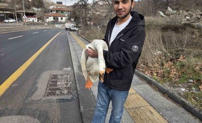 Ankara'nın Elmadağ ilçesinde bulunan bir çiftlikten kaçarak yola çıkan sevimli bir kaz, sürücülere zor anlar yaşattı.