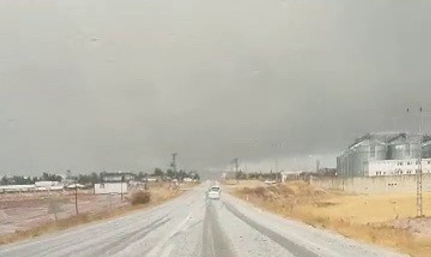 Adıyaman iline bağlı Kahta-Sincik yolu üzerindeki Türkiye Petrolleri tesisleri yakınlarında aniden başlayan dolu yağışı, bölgeyi kısa sürede beyaza kapladı.