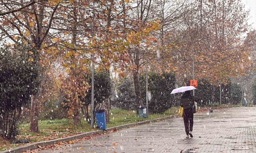 Serdivan ilçesindeki üniversite kampüsünde kar, yalnızca yaklaşık 5 dakika süresince lapa lapa yağdı. Hızla devam eden yağmur, karın yerini aldı. Bu kısa süreli kar yağışı, kampüs öğrencilerine anlık bir mutluluk yaşattı.