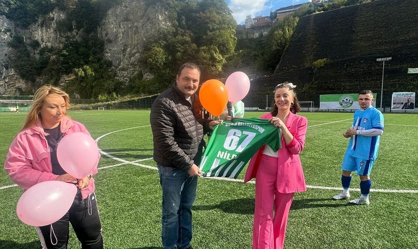 Kozlu Belediyespor- Çaycuma Velioğlu Gelişimspor müsabakası öncesince göğüs kanserini yenen 38 yaşındaki Nilda Kadam için gökyüzüne balonlar bırakıldı. İki takımın sporcuları sahaya "Erken tanı hayat kurtarır" yazılı pankartla çıktı.