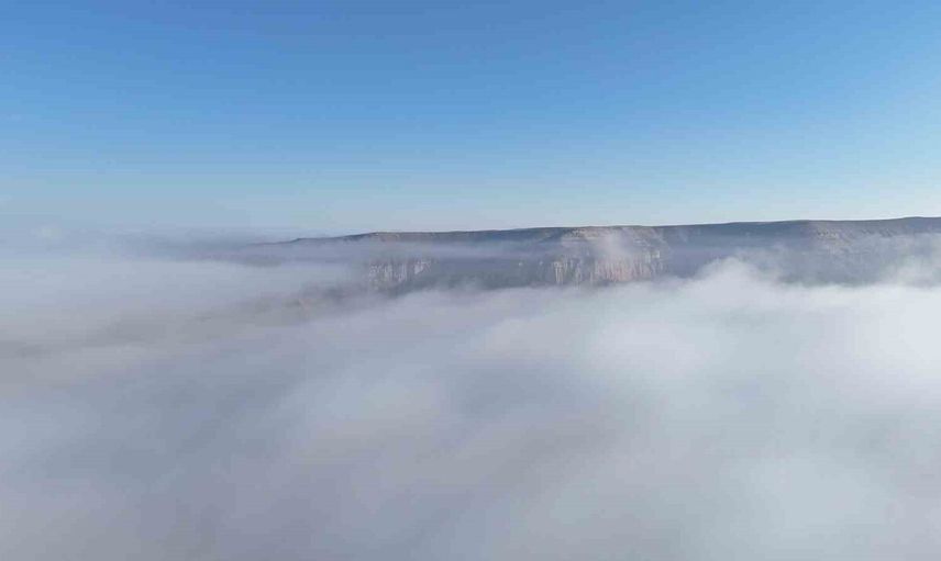 Kapadokya'nın peribacaları, vadileri ve sıcak hava balonlarının kalkış alanları, sis bulutu altında gizemli görüntüler oluşturdu. Nevşehir merkezi ile Ürgüp, Göreme, Uçhisar ve Avanos bölgelerinde etkili olan sis, görüş mesafesini yer yer 20 metreye kadar düşürdü.