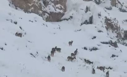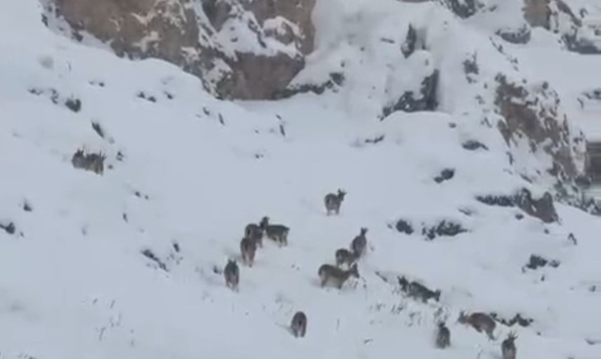 Sarp kayalıklarda dolaşan dağ keçileri, kış şartlarına rağmen doğayla uyum içinde yaşamlarını sürdürüyor. Görüntüler, cep telefonu kamerasıyla kayıt altına alındı.