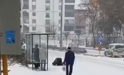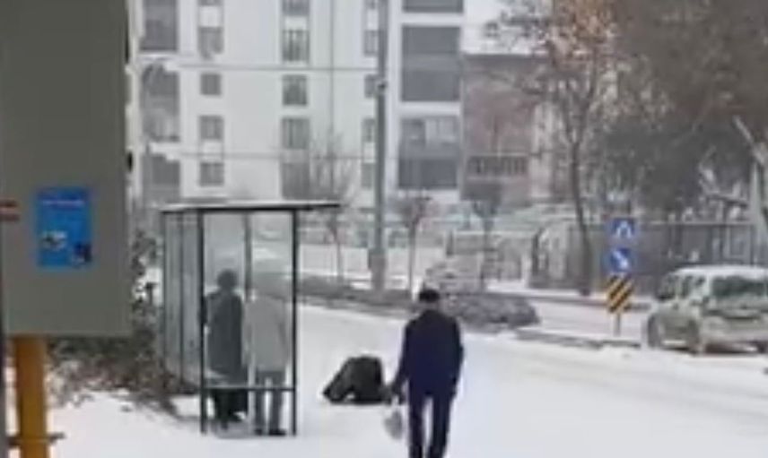 Kar yağışını gören vatandaş, caddede durarak namaz kılmaya başladı ve secdeye gitti. Bu eşsiz an, çevredeki diğer vatandaşlar tarafından cep telefonlarıyla kaydedildi.