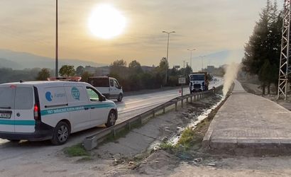 KARABÜK'TE KARAYOLLARI EKİPLERİNİN YÜRÜTTÜĞÜ ÇALIŞMA SIRASINDA PATLAYAN DOĞAL GAZ BORUSU TEDİRGİN ETTİ.