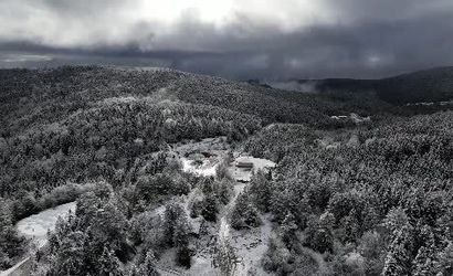 Karabük-Bartın kara yolundaki Ahmetusta Geçidi, 1.030 rakımıyla kar yağışının en çok hissedildiği yerlerden biri oldu. Burada karla kaplanan ağaçlarla birlikte doğal güzellikler havadan görüntülendi.