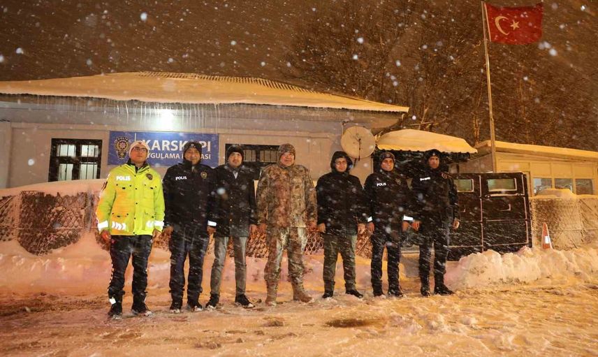 Yapılan paylaşımda, "İl Emniyet Müdürümüz Onur Karaburun, yoğun kar yağışı altında gerçekleştirilen denetimlerde, vatandaşların huzur ve güvenliğinin sağlanması için çalışan personeline teşekkür etti. Bu özverili çalışmaların azim ve kararlılıkla süreceğini belirten müdürümüz, ekiplerin motivasyonunu artırmak için teşvik edici sözler sarf etti. Ziyarete İl Emniyet Müdür Yardımcılarımız da katıldı," denildi.