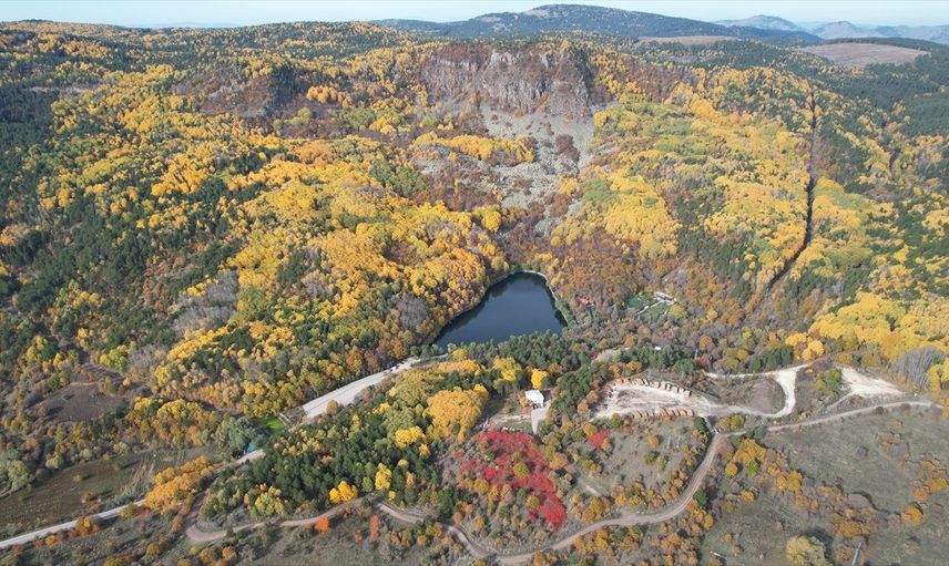 Ankara'da sonbahar renklerinin hakim olduğu Karagöl Tabiat Parkı'nda, görsel şölen yaşanıyor. Çubuk ile Kızılcahamam ilçeleri arasında, Kavak ve Yıldırım dağlarının eteklerinde yer alan ve içerisindeki 1600 rakımlı krater gölü Karagöl'den adını alan tabiat parkı, çam, meşe, söğüt, ıhlamur ve dağ kavağı ağaçlarının sarı, yeşil ve kızıl tonlarıyla kaplandı.