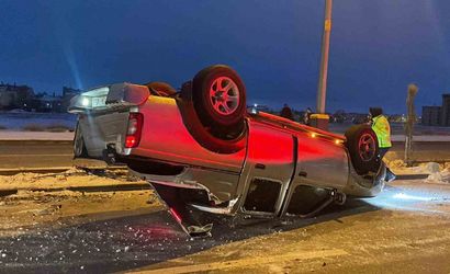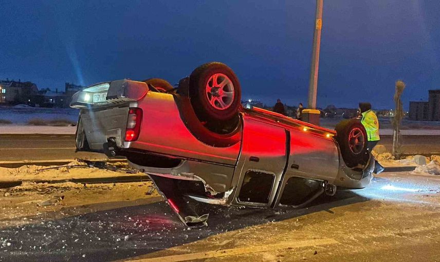 Karaman'ın Elmaşehir Mahallesi'nde meydana gelen trafik kazasında 2 kişi yaralandı. Akşam saatlerinde yaşanan olayda, buzlanma nedeniyle sürücüsünün kontrolünü kaybettiği kamyonet refüje çarparak devrildi.