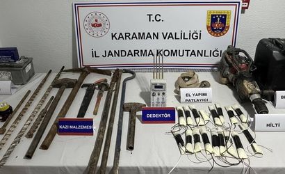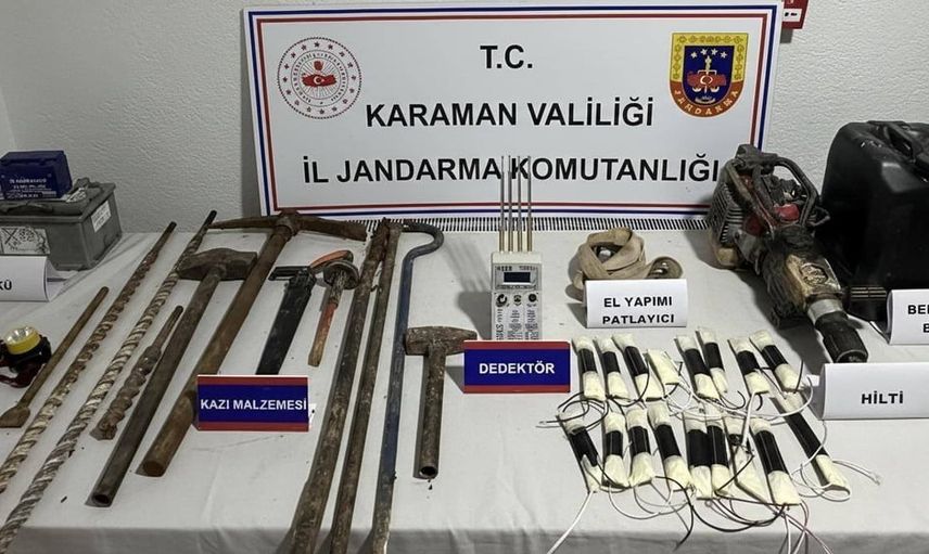 Karaman'da jandarma, gerçekleştirdiği uygulamalar sonucunda el yapımı dinamitler, kaçak tütün ve uyuşturucu maddeler ele geçirdi. Olayda aranan 6 kişi tutuklandı.